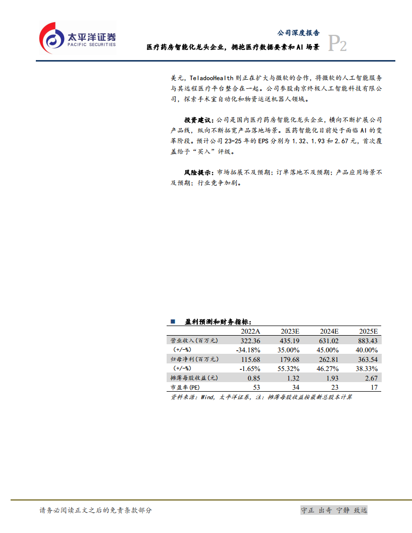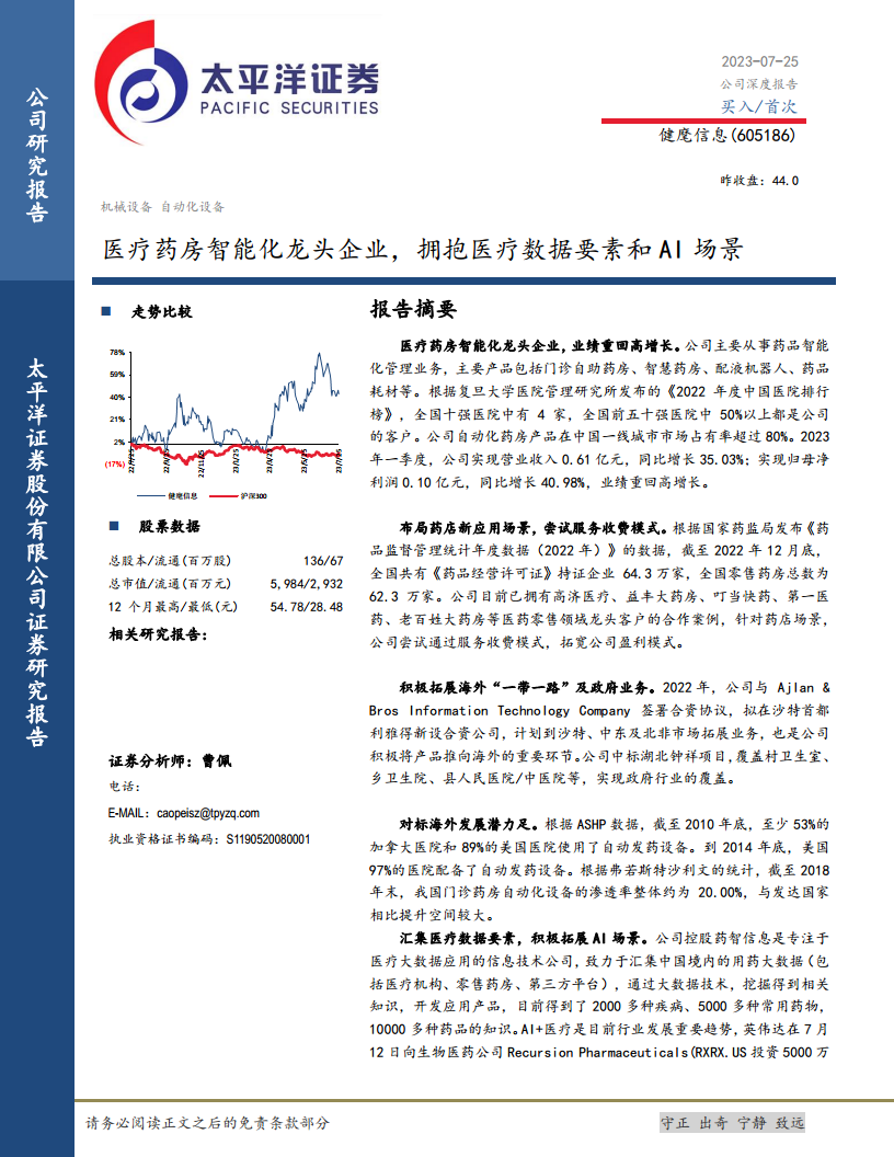 医疗药房智能化龙头企业,拥抱医疗数据要素和AI场景