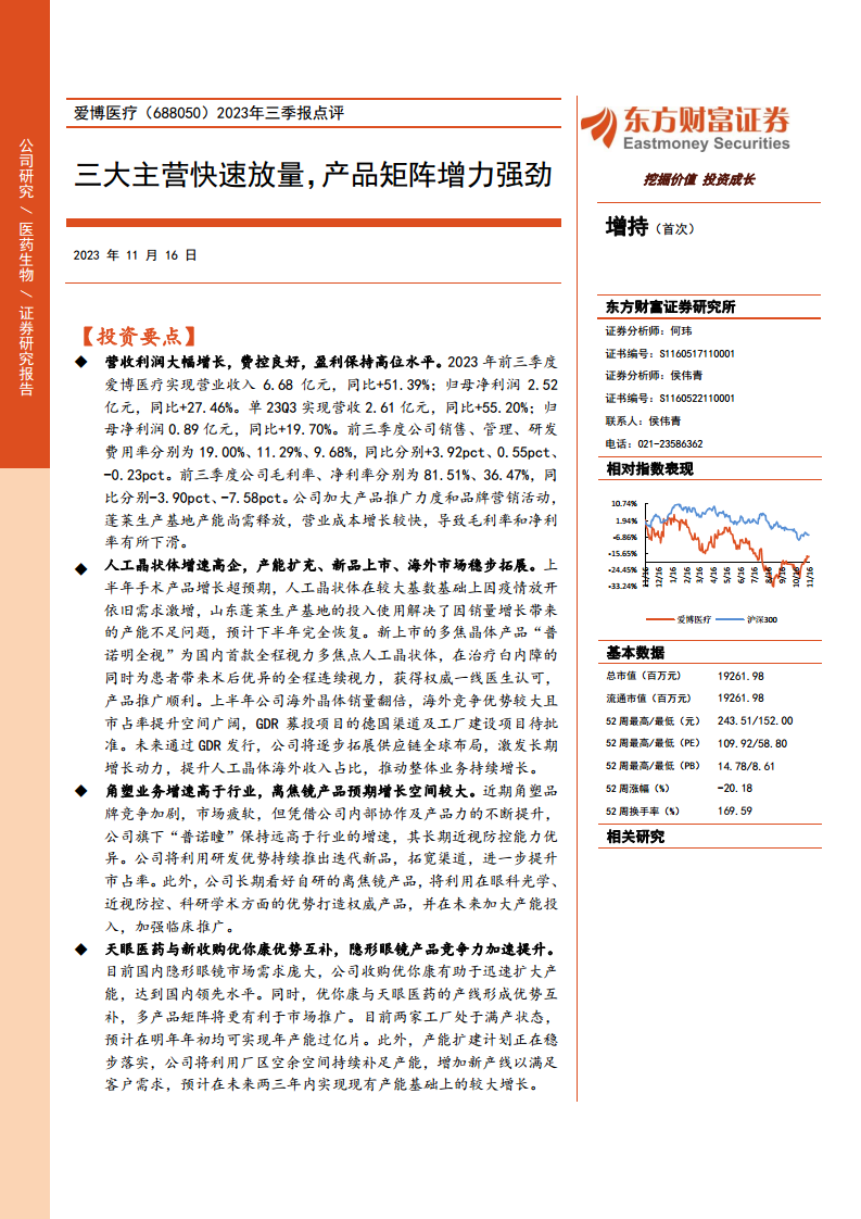 爱博医疗(688050)2023年三季报点评:三大主营快速放量,产品矩阵增力强劲