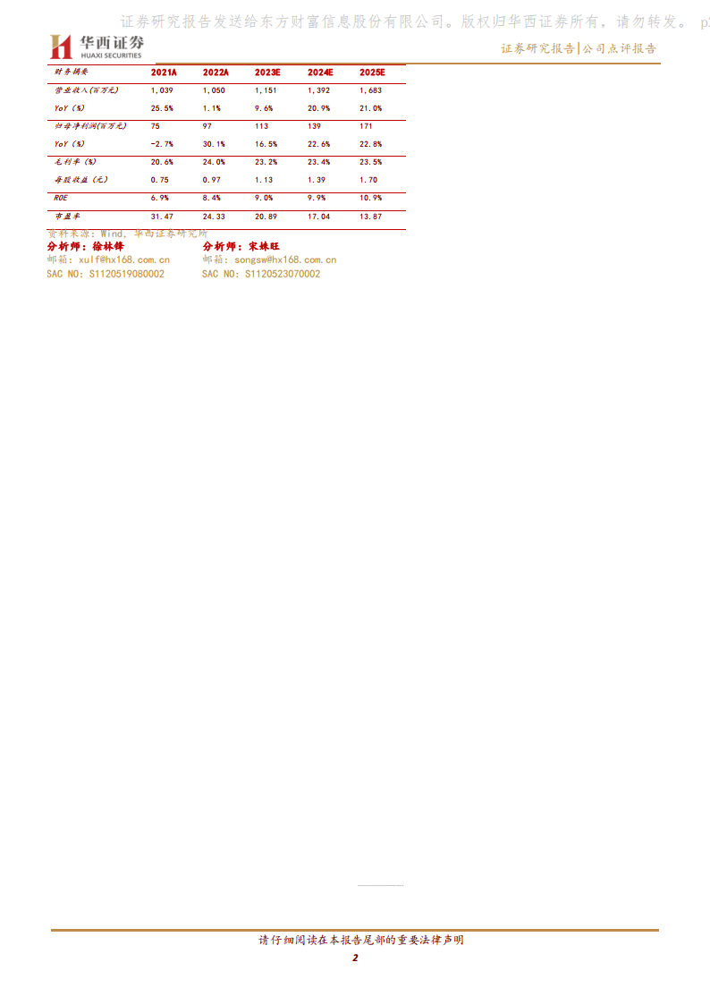 报告提供了公司2021A至2025E的财务摘要,预计营业收入将从2023年的11.51亿元增长至2025年的16.83亿元,归母净利润将从2023年的1.13亿元增长至2025年的1.71亿元。毛利率预计保持在23%以上,ROE将从2023年的9.0%提升至2025年的10.9%。市盈率(PE)预计将从2023年的20.89倍下降至2025年的13.87倍,显示出估值吸引力。详细的利润表、现金流量表、资产负债表和主要财务比率也进行了预测,支撑了公司的增长前景。