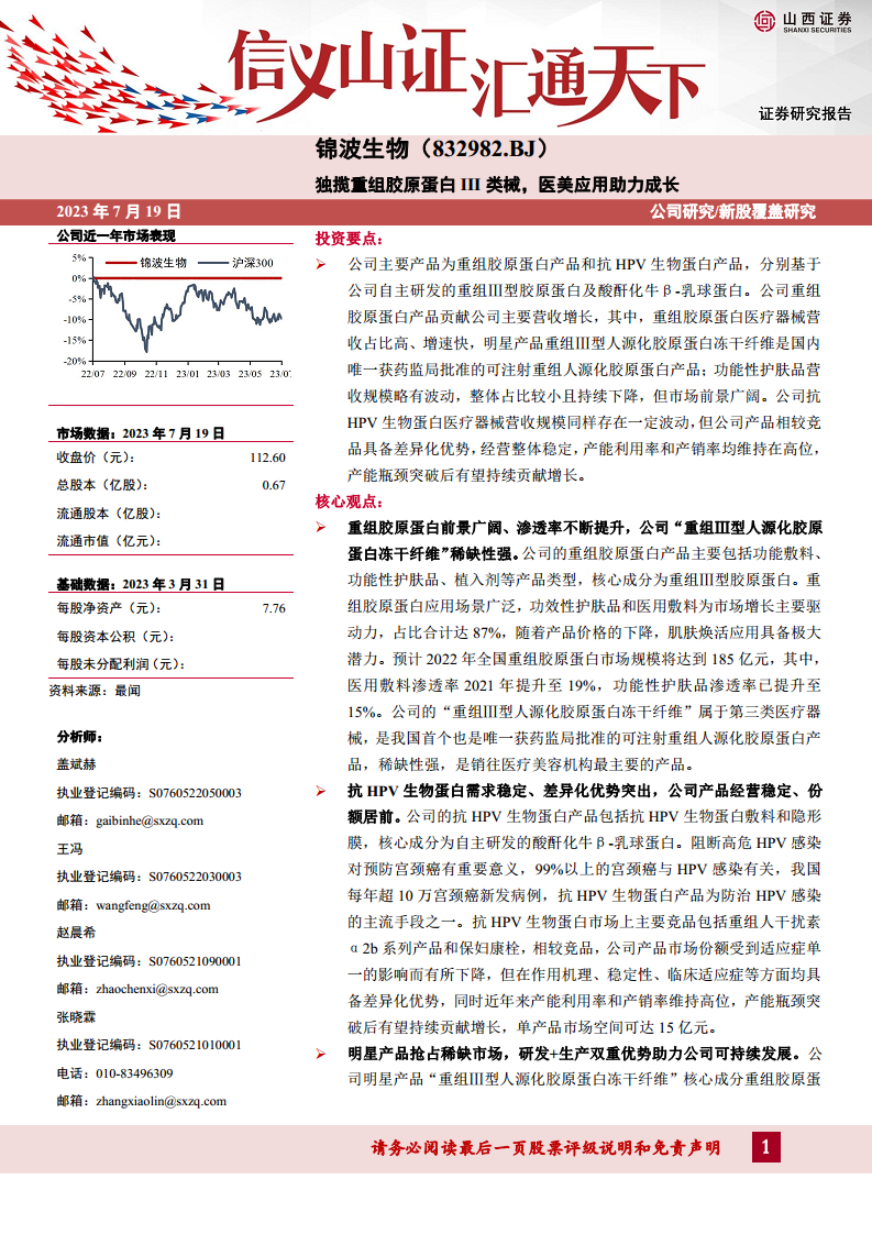 独揽重组胶原蛋白III类械,医美应用助力成长