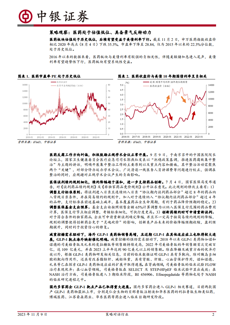 报告强调,政策层面正积极纠偏并支持创新,医保谈判规则的细化旨在稳定企业预期,鼓励“真创新”。同时,国内创新药企业在GLP-1、ADC等前沿领域取得重大进展,并加速出海,显著提升了行业景气度和市场信心。这些积极变化共同预示着医药行业已处于历史底部区间,即将迎来全面反转。