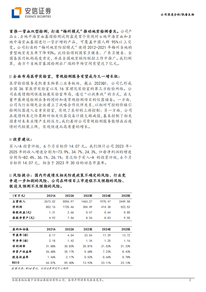 - 业绩测算: 预计凯普HPV12+2宫颈癌筛查业务收入在2023年将实现同比173.39%的增长,并在2023-2025年间实现37.31%的年均复合增长。