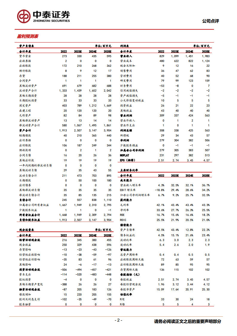 基于公司业务发展态势,预计2023-2025年归母净利润分别为3.1亿元、3.8亿元和5.1亿元,对应PE分别为30倍、24倍和18倍。鉴于公司在条码扫描业务的企稳复苏和医疗业务的强劲增长潜力,维持“买入”评级。 风险提示包括:新产品落地不及预期、医疗业务发展不及预期,以及研报使用信息数据更新不及时的风险。