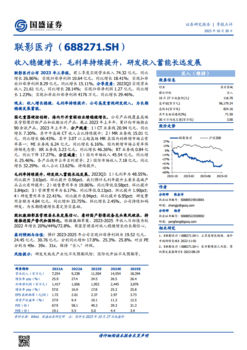 联影医疗(688271):收入稳健增长,毛利率持续提升,研发投入蓄能长远发展