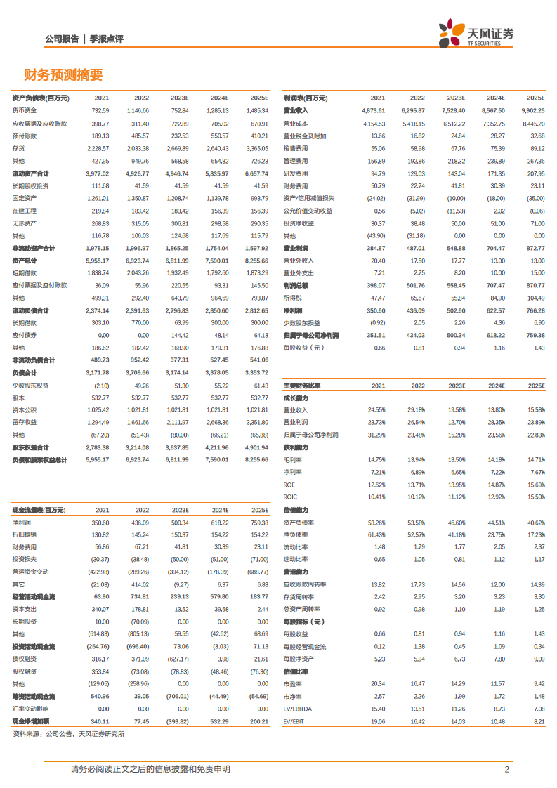考虑到叶黄素短期价格承压,分析师下调了公司利润预测。调整后,预计公司2023-2025年的营业收入分别为75.28亿元、85.68亿元和99.02亿元,同比增长19.58%、13.80%和15.58%;归母净利润分别为5.00亿元、6.18亿元和7.59亿元,同比增长15.28%、23.56%和22.83%。鉴于公司在植提领域具有明显的成本优势,且多品种持续拓展市场,分析师维持“买入”评级。