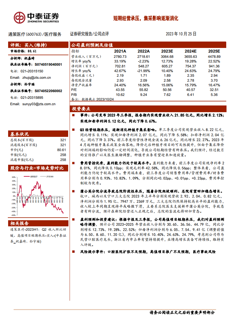 鉴于公司作为民营口腔医疗龙头,在浙江省内市场份额有望持续提升,且业绩高增长具备可持续性,分析师维持“买入”评级。同时,报告也提示了潜在风险,包括口腔医院扩张不及预期、高值项目推广不及预期以及医疗事故风险,建议投资者关注。