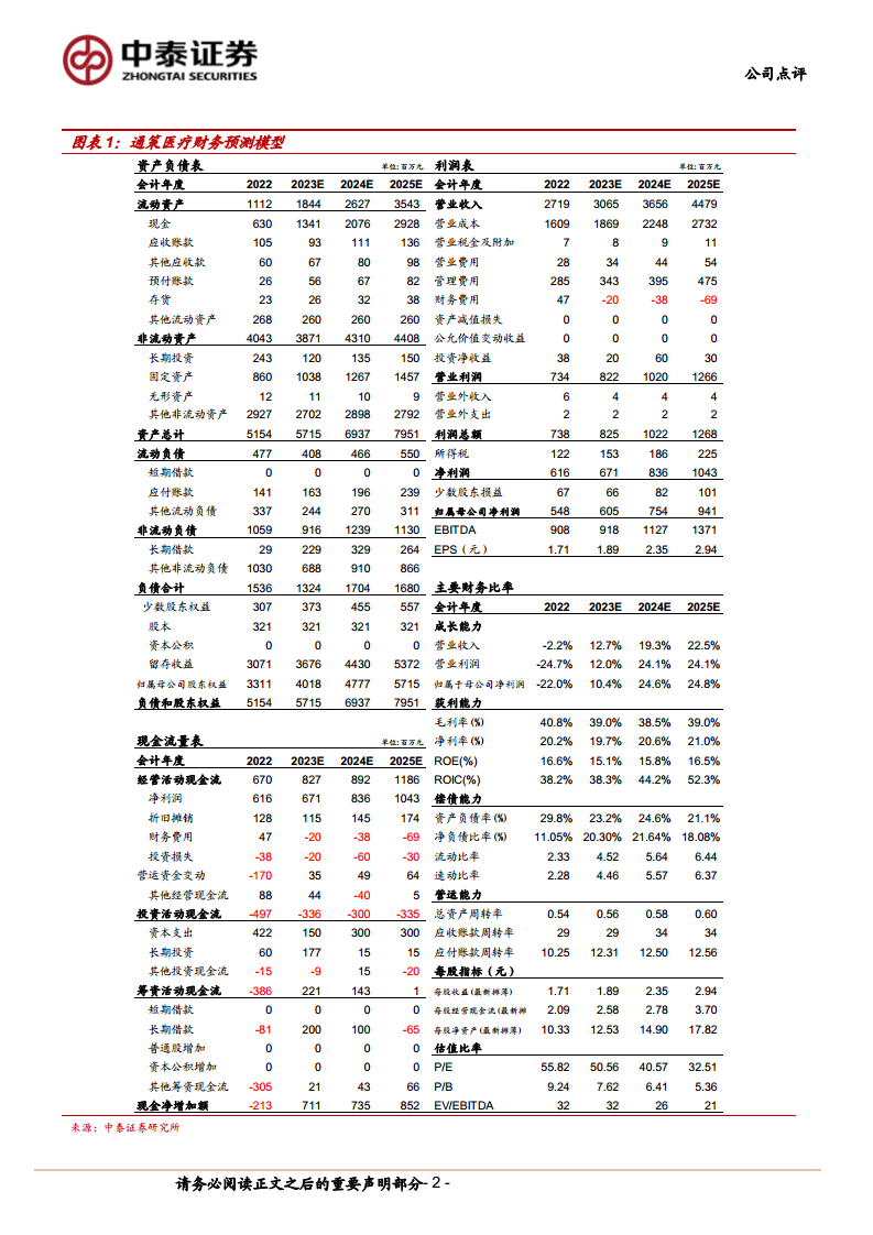 利润表方面,营业收入预计将从2022年的27.19亿元稳健增长至2025年的44.79亿元,年复合增长率达到约17.8%。营业利润和归属母公司净利润也呈现出相似的增长趋势,归母净利润预计从2022年的5.48亿元增长至2025年的9.41亿元,年复合增长率约20.8%。这表明公司核心业务盈利能力持续增强。现金流量表方面,经营活动现金流预计将从2022年的6.70亿元持续增长至2025年的11.86亿元,这与净利润的增长趋势一致,且经营现金流高于净利润,体现了公司良好的现金转化能力。投资活动现金流在预测期内均为负值,反映了公司持续的资本支出和长期投资,以支持其扩张战略。筹资活动现金流在2023年和2024年为正,2025年转为正,表明公司在不同阶段的融资策略调整。