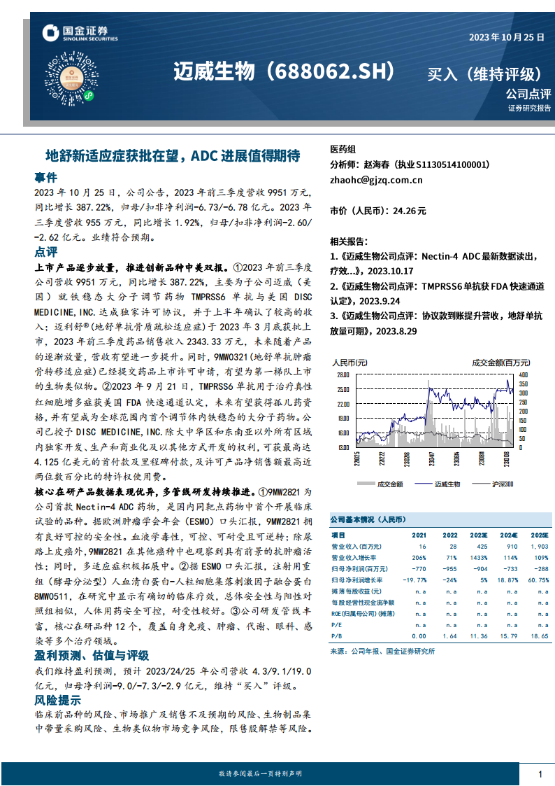 迈威生物(688062):地舒新适应症获批在望,ADC进展值得期待