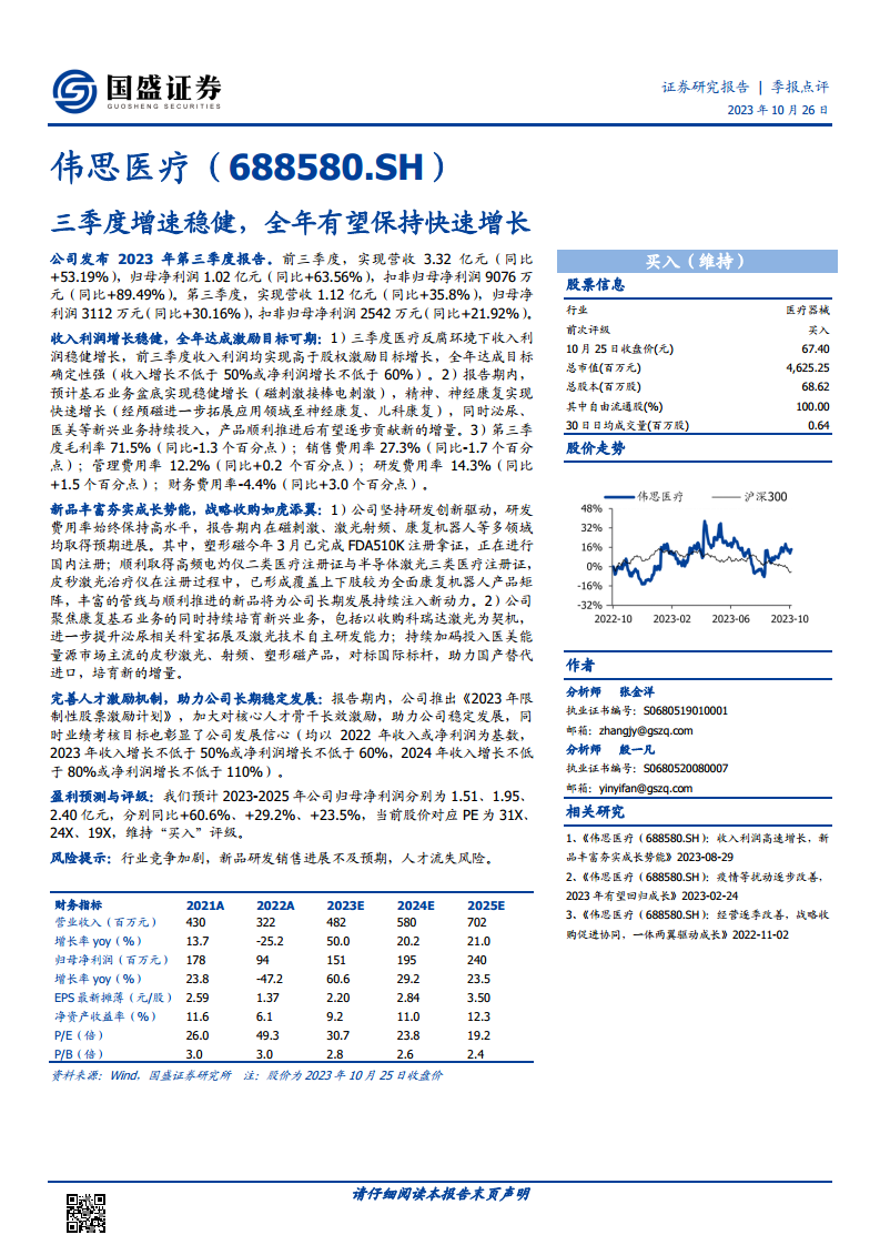 伟思医疗(688580):三季度增速稳健,全年有望保持快速增长