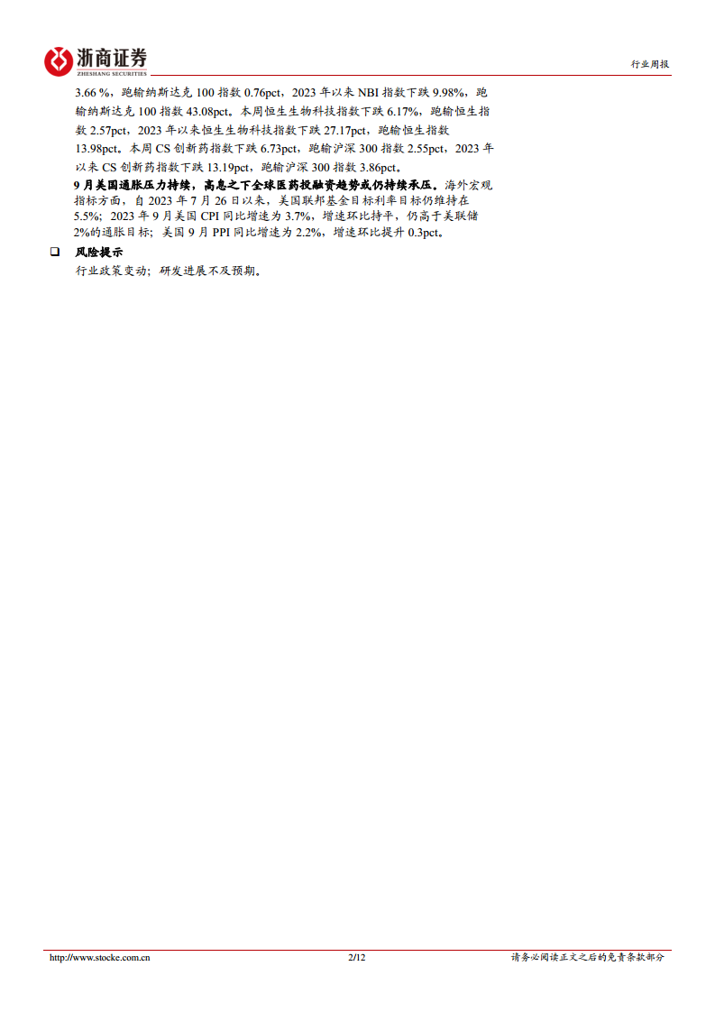 本报告提示投资者关注以下风险:行业政策变动以及研发进展不及预期。
