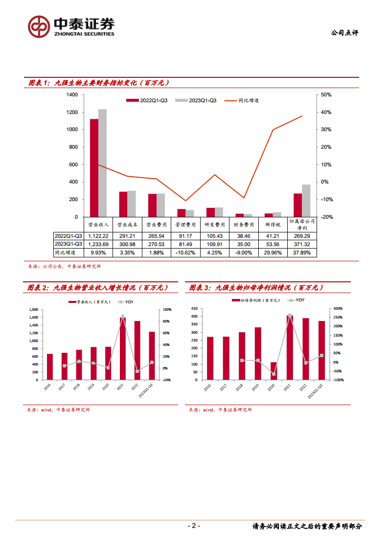 九强生物在2023年前三季度,面对短期医疗政策的挑战,通过优化产品结构和精细化费用管理,实现了营收的稳健增长和归母净利润的显著提升。公司在盈利能力方面的持续改善,特别是毛利率和净利率的提高,凸显了其强大的内生增长动力。同时,国药集团的战略赋能以及化学发光等新业务的成功布局,为公司加速平台化转型和拓展市场份额提供了坚实支撑。尽管盈利预测有所调整,但基于核心业务的良好发展态势和新业务的增长潜力,九强生物的长期投资价值依然被看好,维持“买入”评级。公司正逐步从传统体外诊断企业向综合性、平台型IVD龙头迈进,未来发展值得持续关注。