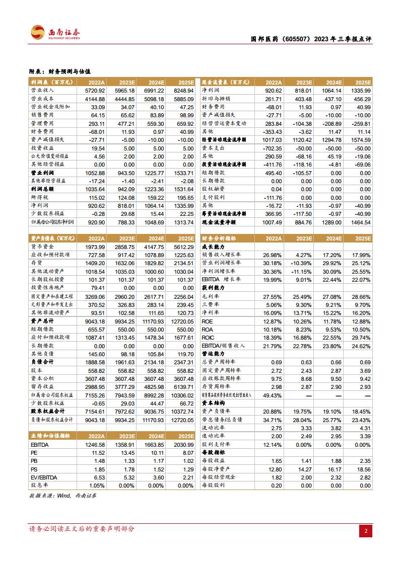 基于上述盈利预测和估值分析,西南证券维持对国邦医药的“买入”评级。