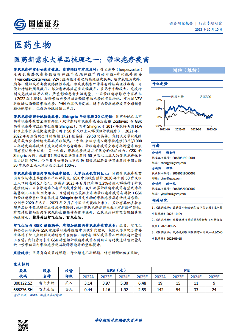 综合来看,带状疱疹疫苗有望成为年销售额数百亿级别的大单品。近期智飞生物获得GSK重组带状疱疹疫苗中国独家代理权,有望凭借其强大的销售平台加速国内市场放量,进一步提升整体接种渗透率。报告推荐关注智飞生物、百克生物等重点标的。