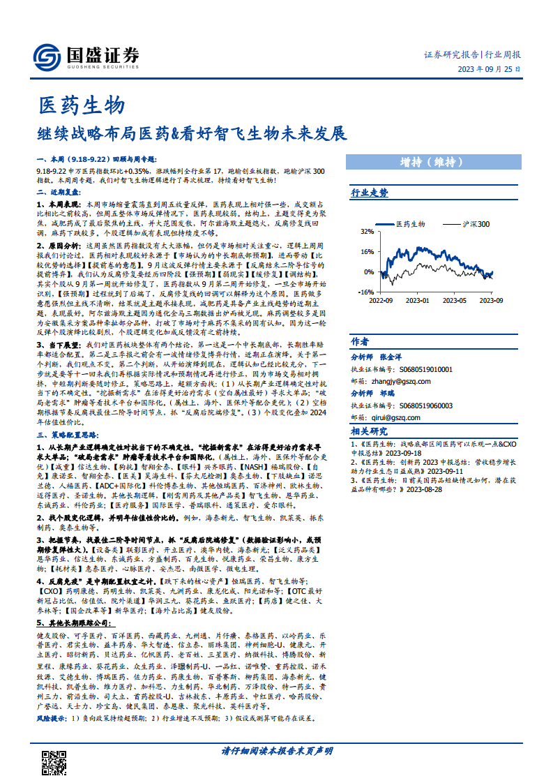 国盛证券医药生物周周题、周观点
