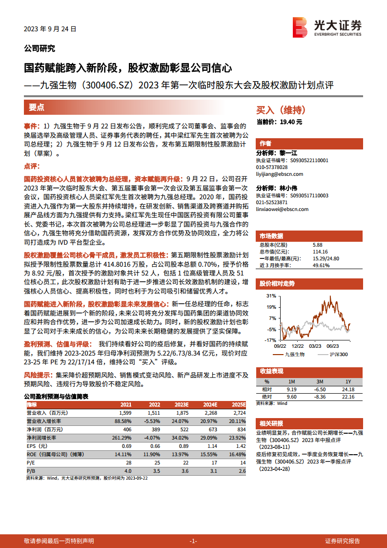 九强生物(300406)2023年第一次临时股东大会及股权激励计划点评:国药赋能跨入新阶段,股权激励彰显公司信心