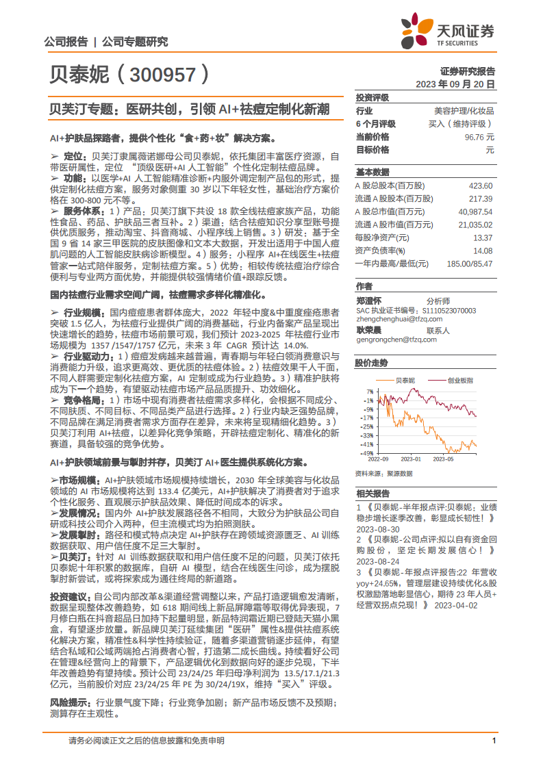 贝泰妮(300957)专题:医研共创,引领AI+祛痘定制化新潮