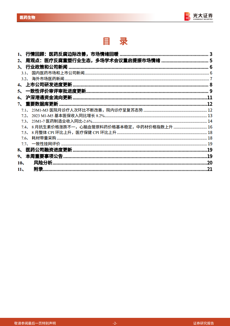 - CPI数据: 8月整体CPI环比上升0.3%,同比上升0.1%。医疗保健CPI环比上升0.1%,同比上升1.2%。其中,中药CPI同比+6.4%,西药CPI同比+0.1%,医疗服务CPI同比+1.1%。