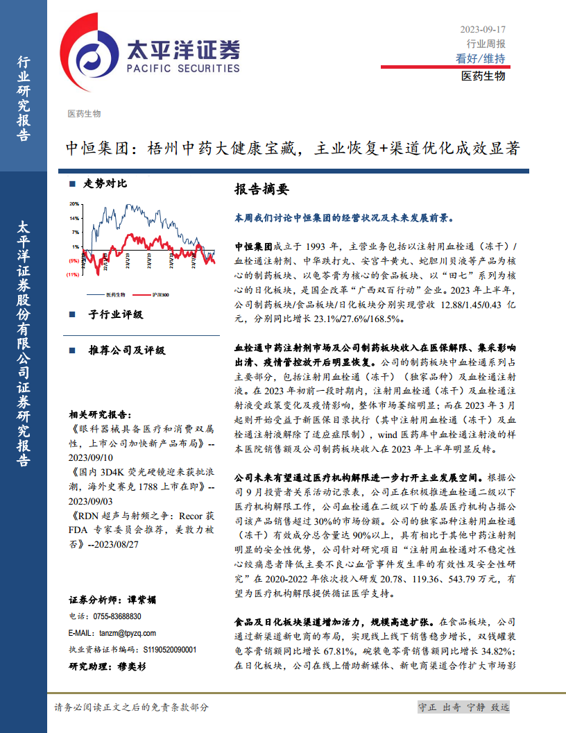 中恒集团:梧州中药大健康宝藏,主业恢复+渠道优化成效显著