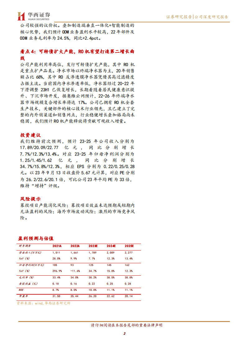 公司在制造端拥有核心优势和下游强议价权,保障了ODM业务的高质量和高盈利水平。同时,国内品牌业务通过DSR模式和快速扩张的经销商网络,实现了高毛利。结合国内净水市场恢复增长的趋势和RO机作为主流品类的巨大潜力,开能健康具备良好的发展前景。