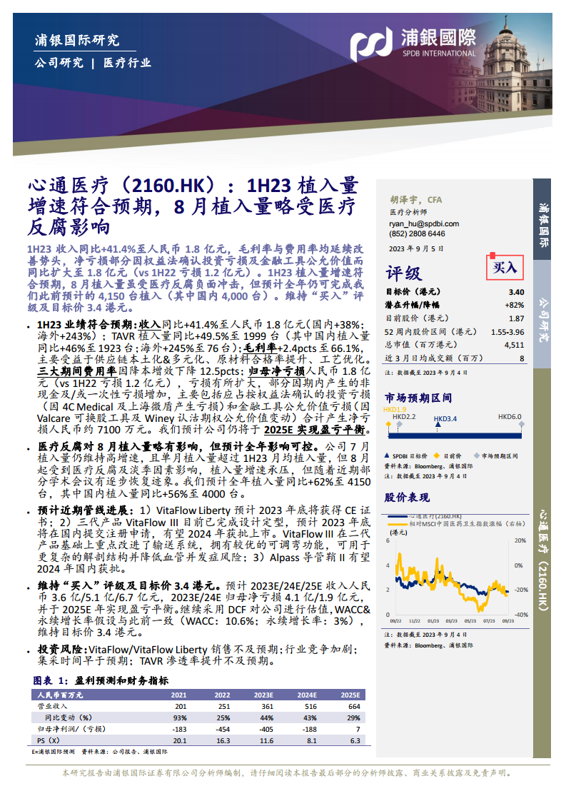 心通医疗(2160.HK):1H23植入量增速符合预期,8月植入量略受医疗反腐影响