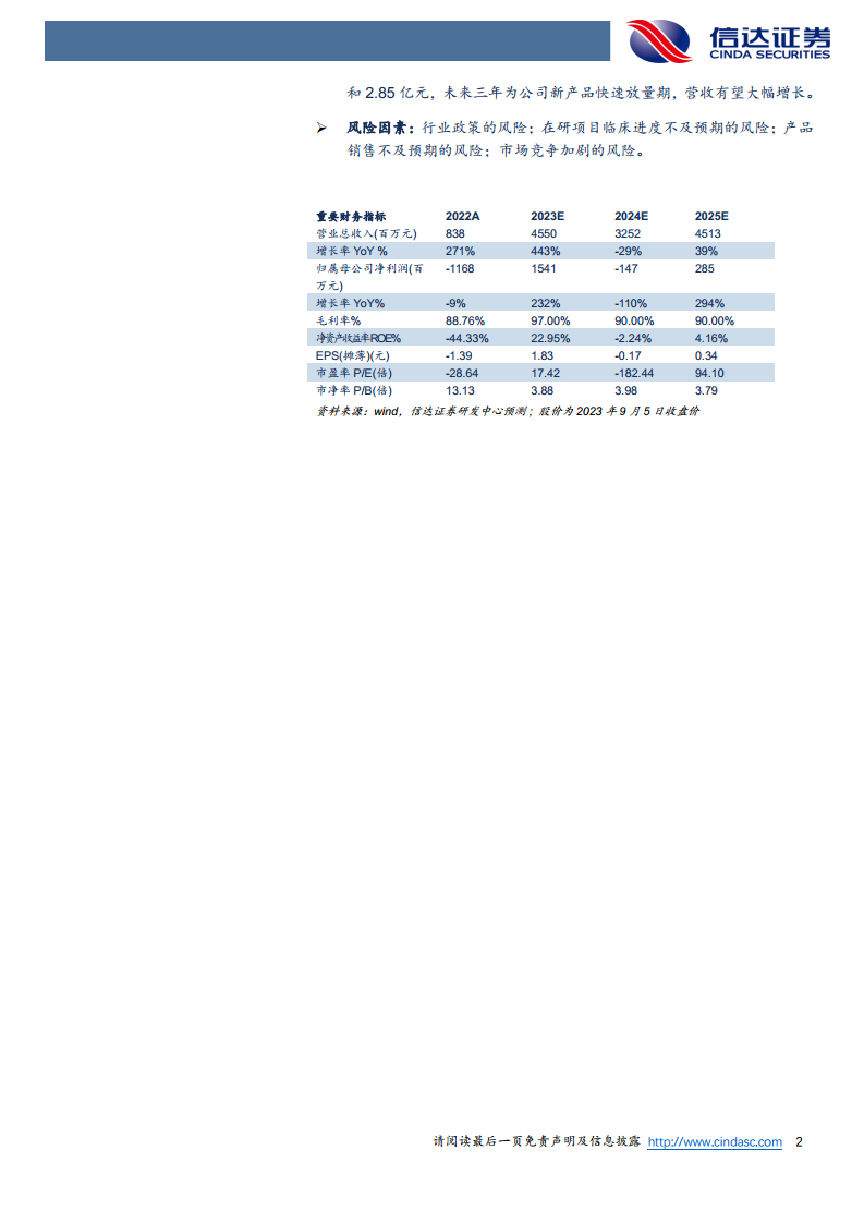 根据信达证券的盈利预测,康方生物未来三年将迎来新产品快速放量期,营收有望大幅增长。预计公司2023年至2025年的营业总收入将分别达到45.5亿元、32.52亿元和45.13亿元。归属于母公司净利润预计分别为15.41亿元、-1.47亿元和2.85亿元。尽管2024年净利润预计出现短期波动,但整体趋势显示公司在经历投入期后将逐步实现盈利并持续增长。