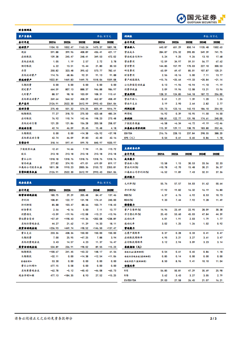鉴于公司自2023年第一季度以来业绩的快速恢复,报告预测诺泰生物2023年至2025年的营业收入将分别达到8.50亿元、11.35亿元和15.03亿元,同比增速分别为30.53%、33.56%和32.33%。归母净利润预计分别为1.39亿元、1.84亿元和2.52亿元,同比增速分别为7.43%、32.51%和37.36%。对应的每股收益(EPS)分别为0.65元、0.86元和1.18元。基于这些积极的盈利预测,报告维持对诺泰生物的“增持”评级。