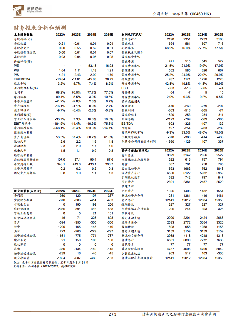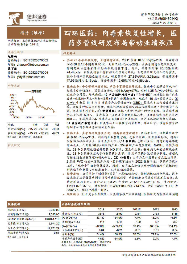 四环医药(00460):肉毒素恢复性增长,医药多管线研发布局带动业绩承压