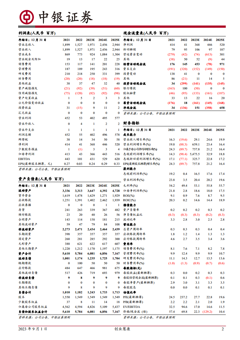 本报告指出,创业慧康在2023年第二季度成功实现业绩拐点,营收和利润均恢复正增长,显示出公司经营状况的积极转变。公司通过持续的研发投入和在医疗卫生信息化核心业务领域的深耕,如电子病历系统升级和新一代Hi-HIS系统的推广,不断提升市场竞争力。同时,公司在医保、医疗互联网和医疗物联网等创新业务板块的协同发展,为未来的业绩增长提供了多元动力。尽管面临宏观经济波动和市场竞争加剧的风险,分析师基于对公司未来盈利能力的预测,维持“买入”评级,表明对创业慧康长期发展潜力的认可。