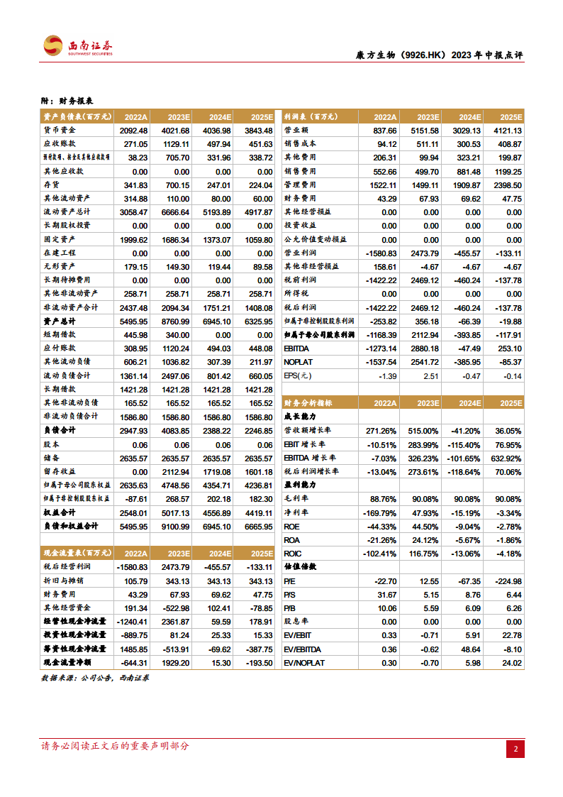 根据西南证券的盈利预测,随着公司研发的逐步聚焦、管线的逐步落地以及卡度尼利的快速放量,公司业绩长期增长动力充足。预计公司2023-2025年收入分别为51.5亿元、30.3亿元和41.2亿元。归属母公司净利润预计在2023年达到21.1亿元,但2024年和2025年可能出现亏损,分别为-3.9亿元和-1.2亿元。主要风险包括研发进展或不及预期、核心品种商业化进展或不及预期以及政策风险。