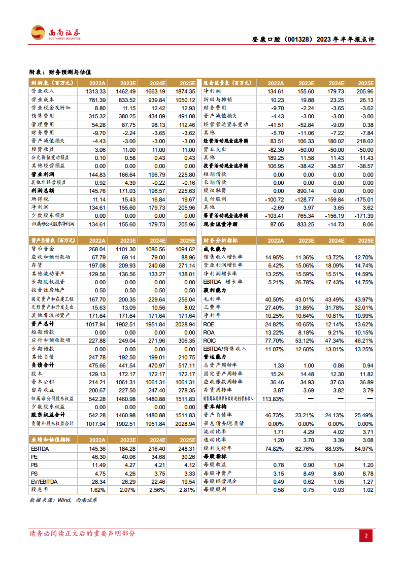 基于公司上半年的业绩表现和未来的发展潜力,西南证券对登康口腔的盈利能力进行了预测并给出了投资建议。