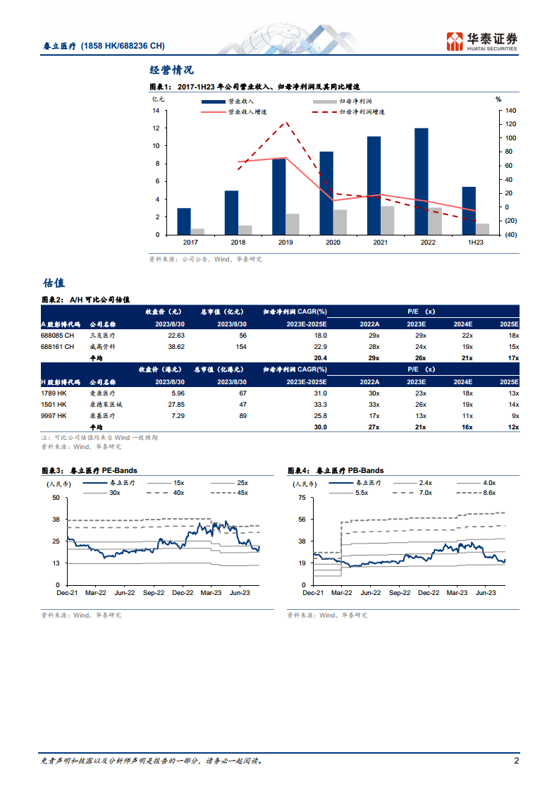 春立医疗在2023年上半年受到脊柱集采退换货的短期负面影响,导致营收和净利润同比下滑,且费用率有所上升,毛利率因关节集采而下降。然而,报告分析指出,关节业务的集采影响正逐步消化,脊柱业务有望在2024年实现强劲复苏,而运动医学作为新兴业务线正快速放量,为公司提供新的增长动力。基于对未来业绩恢复和新业务增长的信心,华泰研究下调了近期的盈利预测,但维持了“买入”评级,并相应调整了A股和H股的目标价,认为春立医疗是诊疗恢复的受益标的,长期增长潜力值得期待。