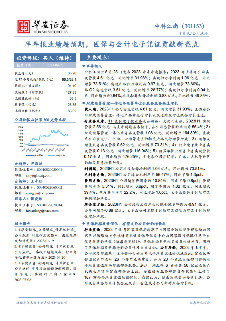半年报业绩超预期,医保与会计电子凭证贡献新亮点