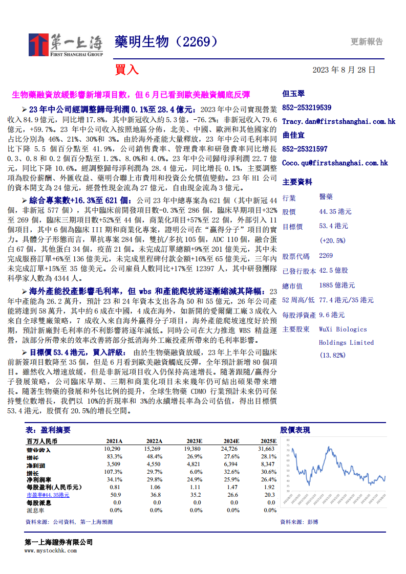药明生物在2023年上半年展现出强劲的非新冠业务增长势头,有效抵消了新冠相关收入的下滑,实现了整体营收的稳健增长。尽管全球产能扩张初期对毛利率构成压力,但公司通过精益运营和产能爬坡,预计盈利能力将逐步改善。公司项目管线持续丰富,尤其在临床后期和商业化项目上表现突出,且未完成订单总额持续增长,为未来业绩提供了坚实保障。面对生物药融资放缓的短期挑战,公司凭借其全球化的业务布局、多元化的项目组合以及“赢得分子”的策略,有望在未来几年继续保持高速增长。分析师维持“买入”评级,并给出53.4港元的目标价,反映了对公司长期增长潜力的信心。