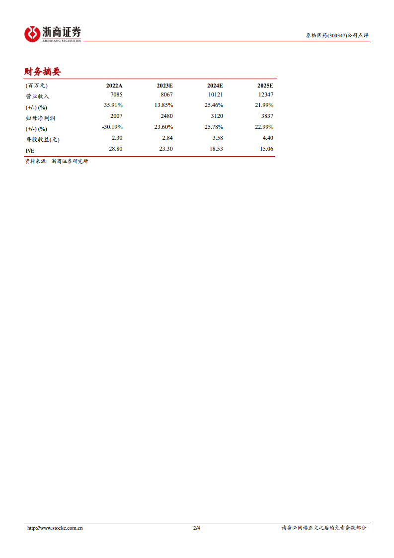 - 财务预测: 浙商证券研究所预计泰格医药2023-2025年每股收益(EPS)分别为2.84元、3.58元和4.40元。