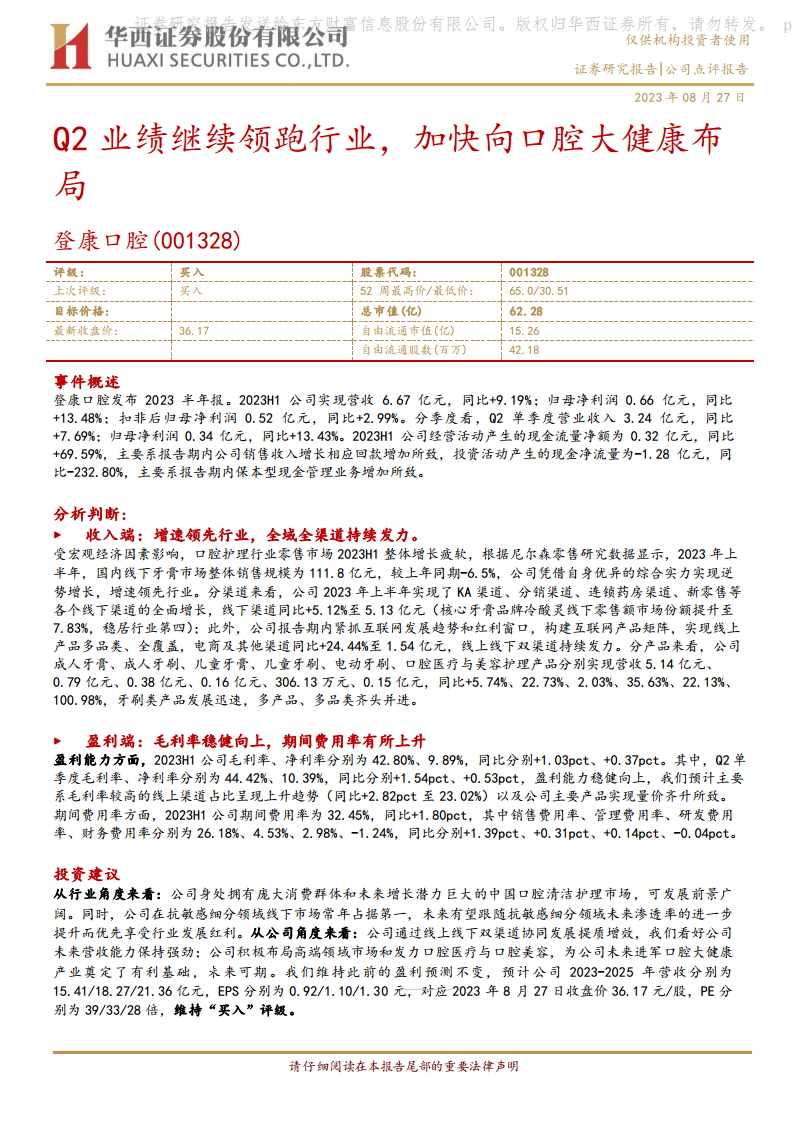 Q2业绩继续领跑行业,加快向口腔大健康布局