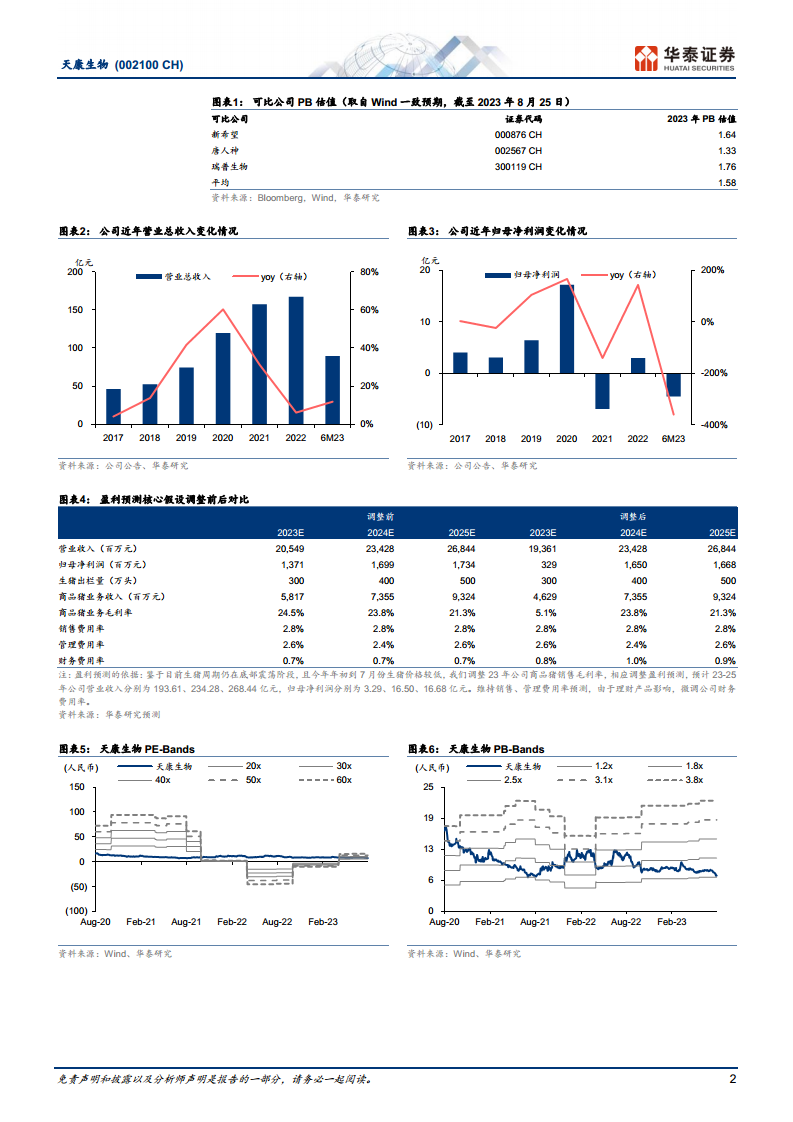 鉴于2023年以来生猪价格持续低迷的市场环境,华泰研究对天康生物的盈利预测进行了下调。
