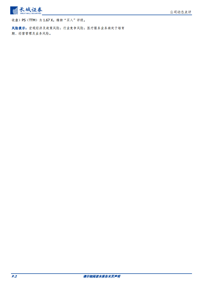 鉴于公司双主业布局的积极进展和医疗业务的增长潜力,分析师维持“买入”评级。同时,报告提示了宏观经济及政策风险、行业竞争风险以及医疗服务业务尚处于培育期可能面临的经营管理及业务风险。