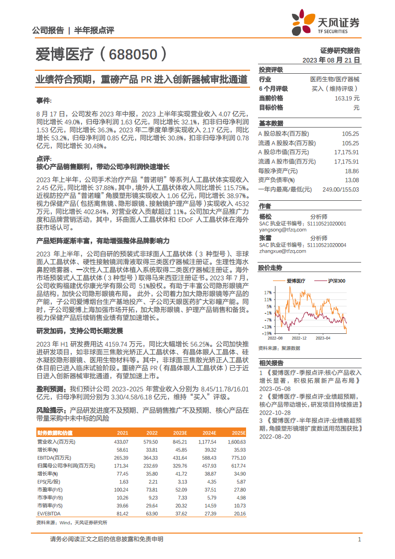 爱博医疗于2023年8月17日发布中报,报告显示: