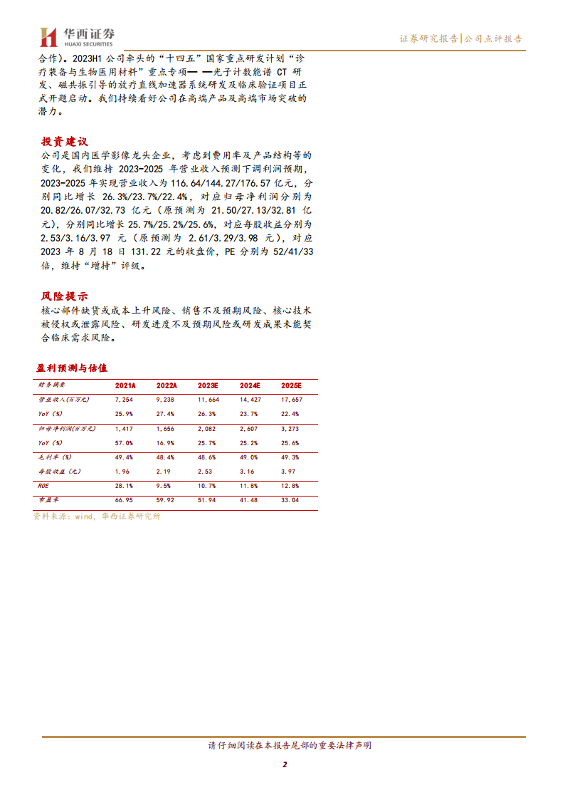联影医疗在2023年上半年展现出强劲的增长势头,营业收入和归母净利润均实现两位数增长。公司通过持续优化产品结构,提升中高端产品占比,特别是在MR和XR等高增长领域表现突出。在国内市场,联影医疗多条产品线市场占有率位居前列,同时国际化战略进展顺利,国际市场收入占比和增速均有显著提升。公司持续高强度的研发投入,不仅巩固了技术优势,也为未来创新突破和全球化发展提供了有力保障。尽管面临核心部件供应和市场销售等风险,但鉴于其领先的市场地位、持续的创新能力和广阔的国内外市场空间,分析师维持“增持”评级,并看好公司未来的发展潜力。