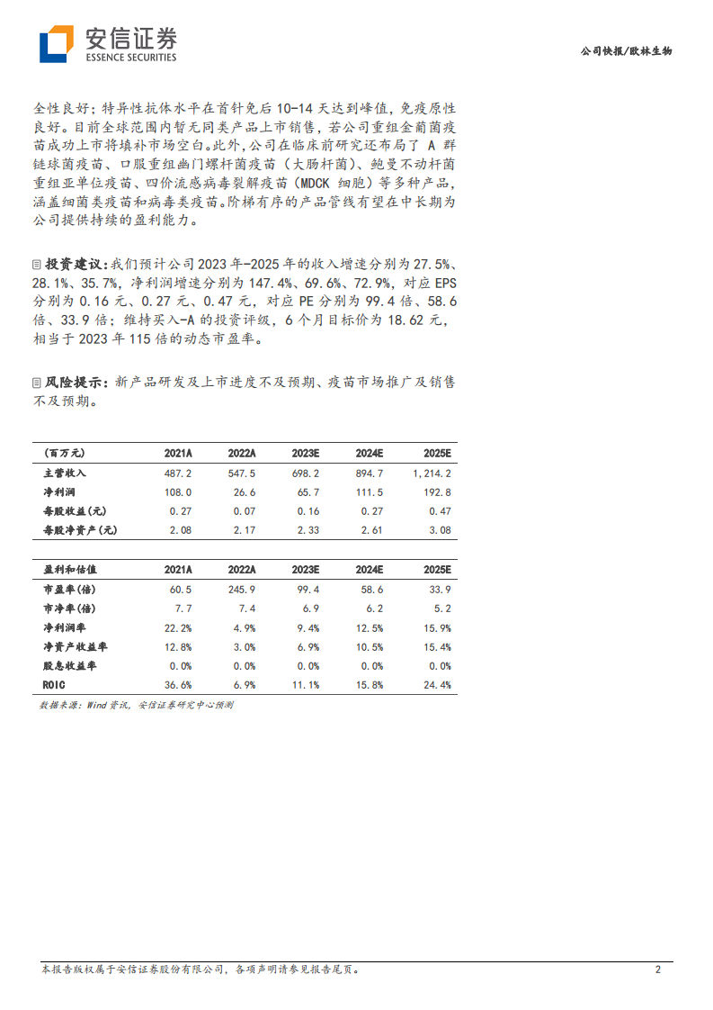 欧林生物2023年上半年业绩受到研发投入大幅增加的影响,导致净利润有所下滑,但营业收入保持微增,毛利率稳定在93.04%,显示其核心业务盈利能力依然强劲。公司在核心产品方面表现突出,吸附破伤风疫苗批签发量位居行业首位,并获批新增预灌封包装,进一步巩固了市场竞争力。在创新产品方面,AC-Hib联合疫苗的上市许可申请已获NMPA受理,有望填补市场空白并成为公司新的利润增长点。同时,重组金葡菌疫苗已进入Ⅲ期临床试验,作为国内唯一且全球尚无同类产品上市的创新疫苗,其未来市场潜力巨大。公司还拥有丰富的临床前产品管线,为中长期发展奠定了坚实基础。分析师预计公司未来三年收入和净利润将实现高速增长,维持“买入-A”评级,并给出18.62元的目标价。投资者在关注公司发展潜力的同时,也需警惕新产品研发上市进度及市场推广销售不及预期等潜在风险。