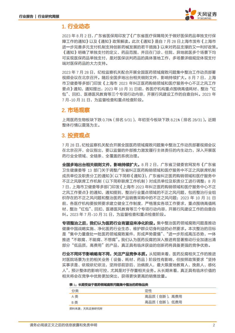 近期医药行业政策密集出台,呈现出医保支持创新与医药反腐并重的特点。