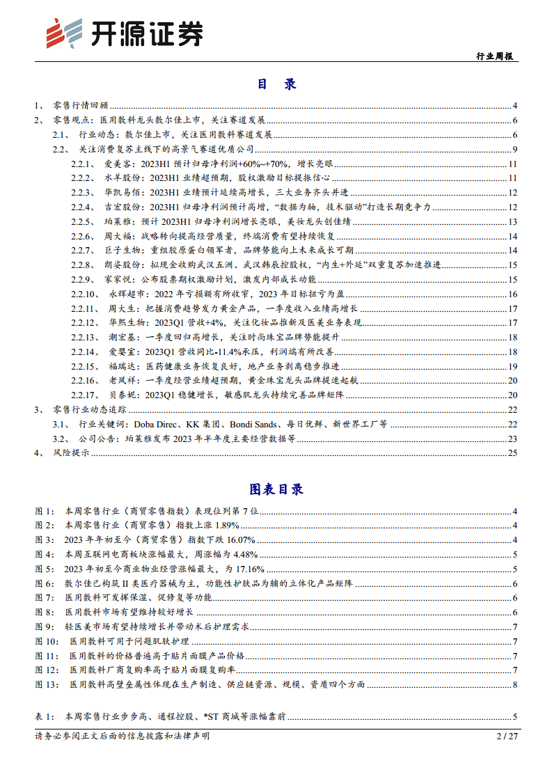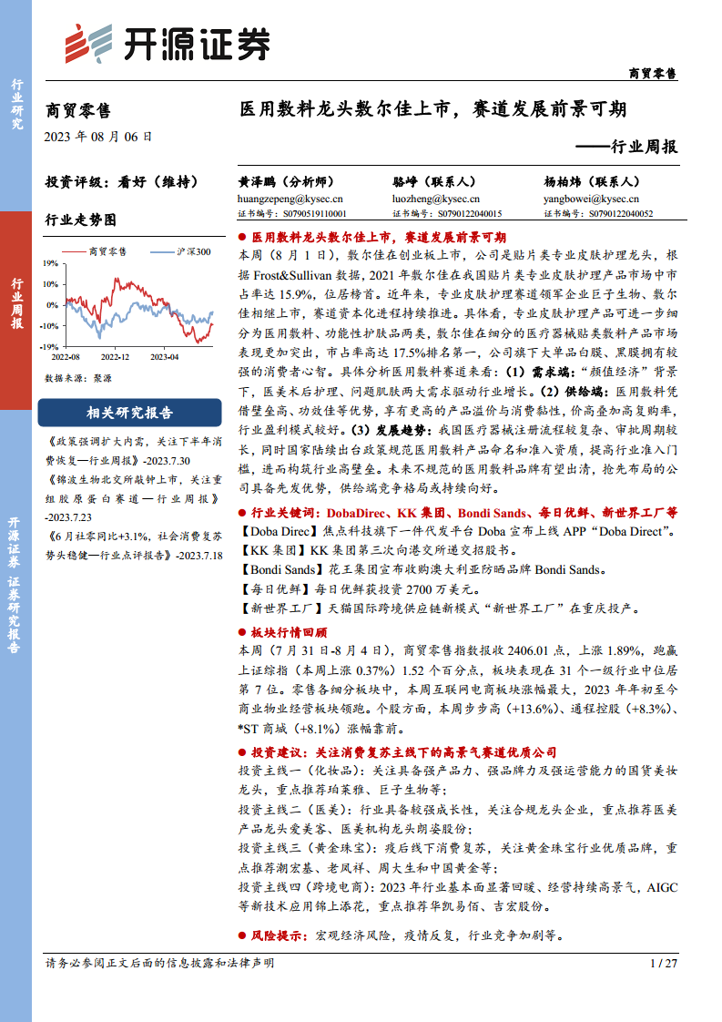 商贸零售行业周报:医用敷料龙头敷尔佳上市,赛道发展前景可期