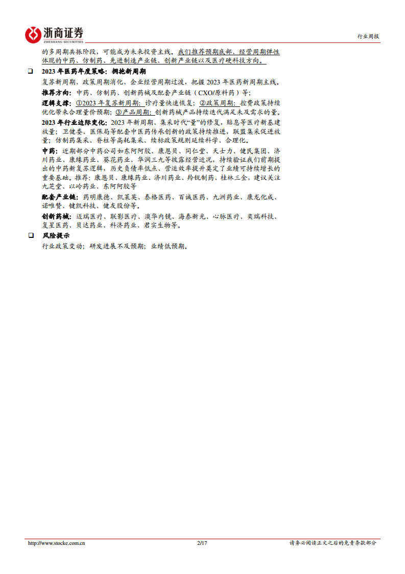 本报告对医药生物行业当前面临的医疗反腐深化、医改政策调整以及市场表现进行了专业而深入的分析。报告指出,医疗反腐已进入深水区,政策趋严将是常态,这促使医药行业进入多周期共振的新阶段。尽管短期内医药板块整体承压,估值和持仓处于历史低点,但结构性机会显现。报告建议投资者关注中药、流通、化药等与产业出清和医改调整同频的板块,特别是那些通过营销改革和应收改善实现良好现金流的公司,以及前期调整较多的CXO龙头企业。在2023年医药新周期下,中药、配套产业链和创新药械被视为未来投资主线,其投资逻辑在于诊疗量恢复、政策优化和产品创新迭代。同时,报告也提示了行业政策变动、研发进展不及预期和业绩低预期等风险。