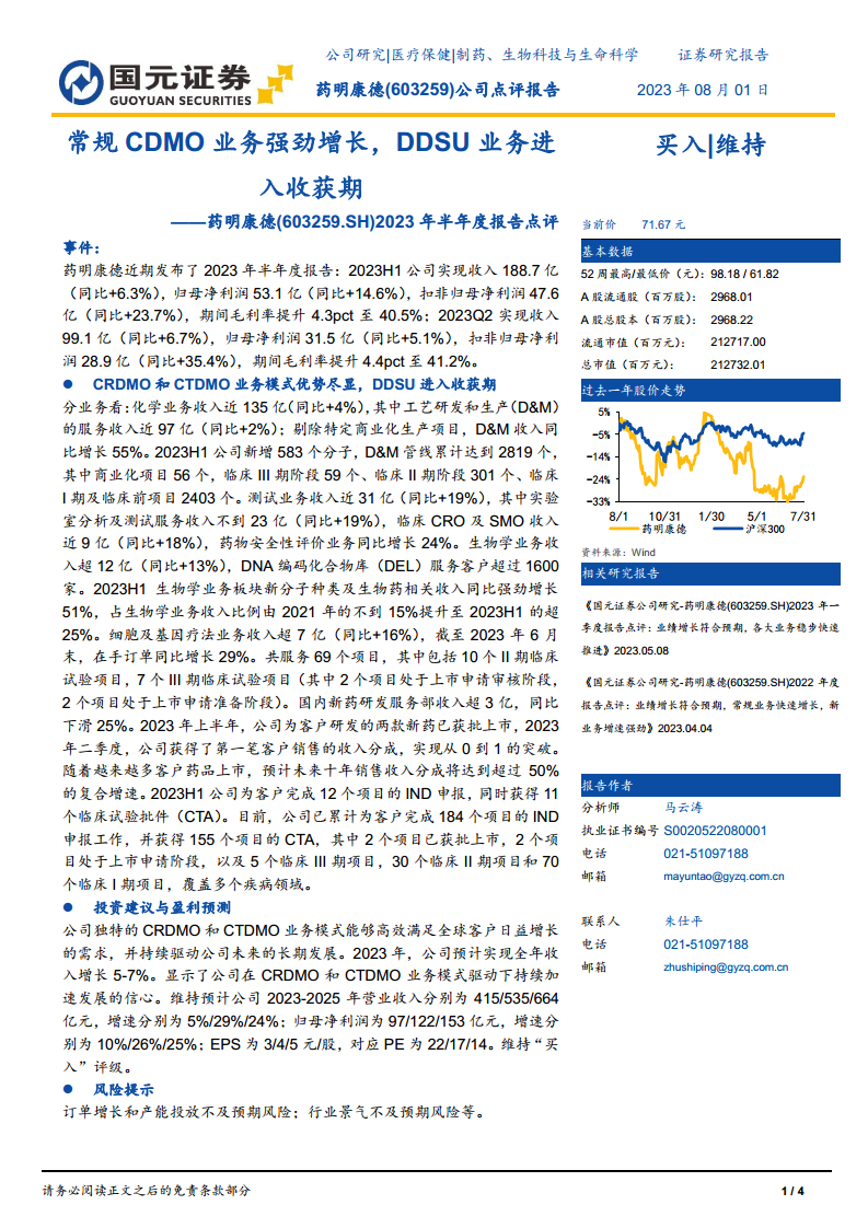 药明康德在2023年上半年展现出稳健的财务增长,尤其在扣非归母净利润方面实现显著提升。公司独特的CRDMO(合同研究、开发与生产组织)和CTDMO(合同测试、开发与生产组织)业务模式优势持续显现,有效满足了全球客户日益增长的需求,成为公司长期发展的核心驱动力。