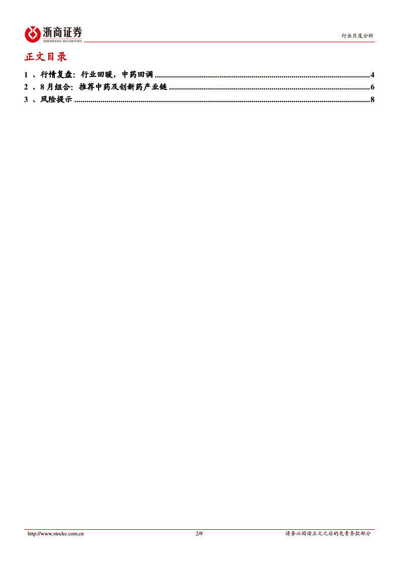 医药行业2023年8月月报:边际向好,推荐中药及创新药产业链