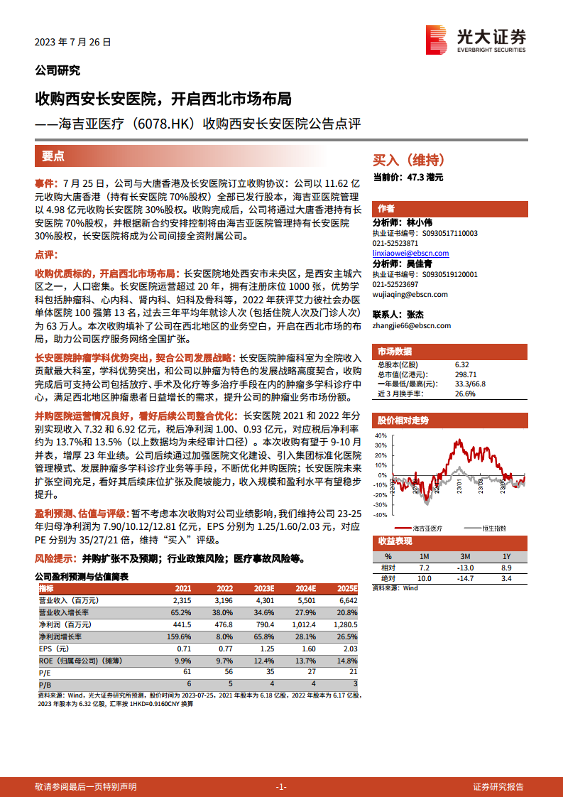 海吉亚医疗成功收购西安长安医院,是其全国化战略布局中的关键一步,尤其是在西北市场的突破。此次收购不仅引入了一家运营良好、盈利稳定的优质医院,更重要的是,长安医院在肿瘤学科的突出优势与海吉亚医疗的核心发展战略高度契合,有望通过深度整合,显著提升公司在肿瘤诊疗领域的市场竞争力与服务能力。报告对公司未来的业绩增长持乐观态度,并维持“买入”评级,充分体现了市场对此次战略性并购及其后续协同效应的积极预期。