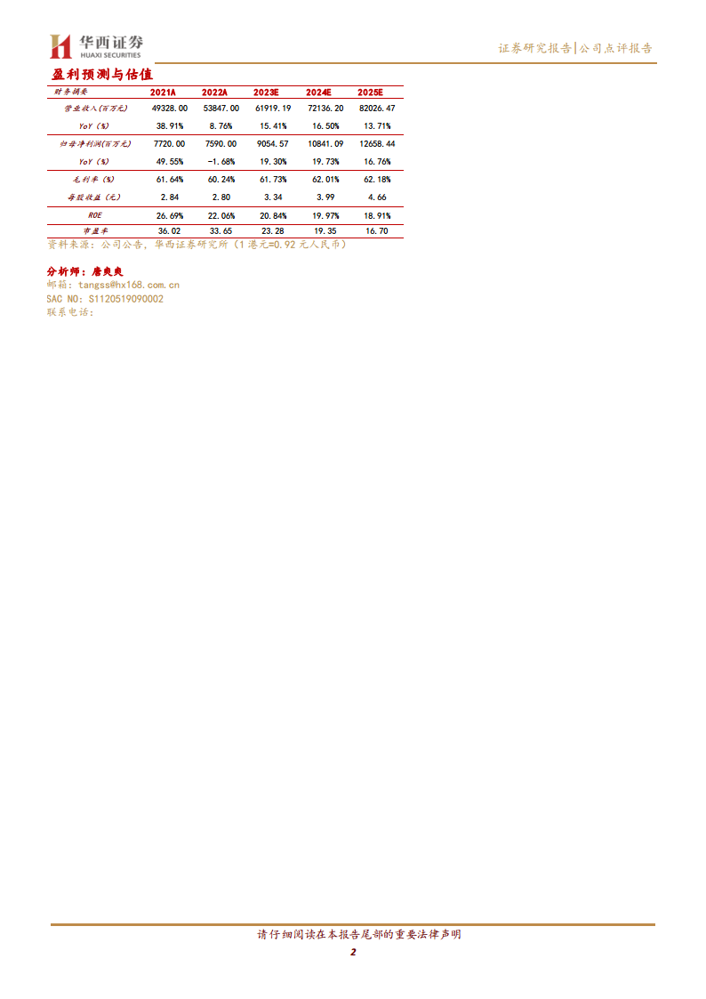盈利预测与估值