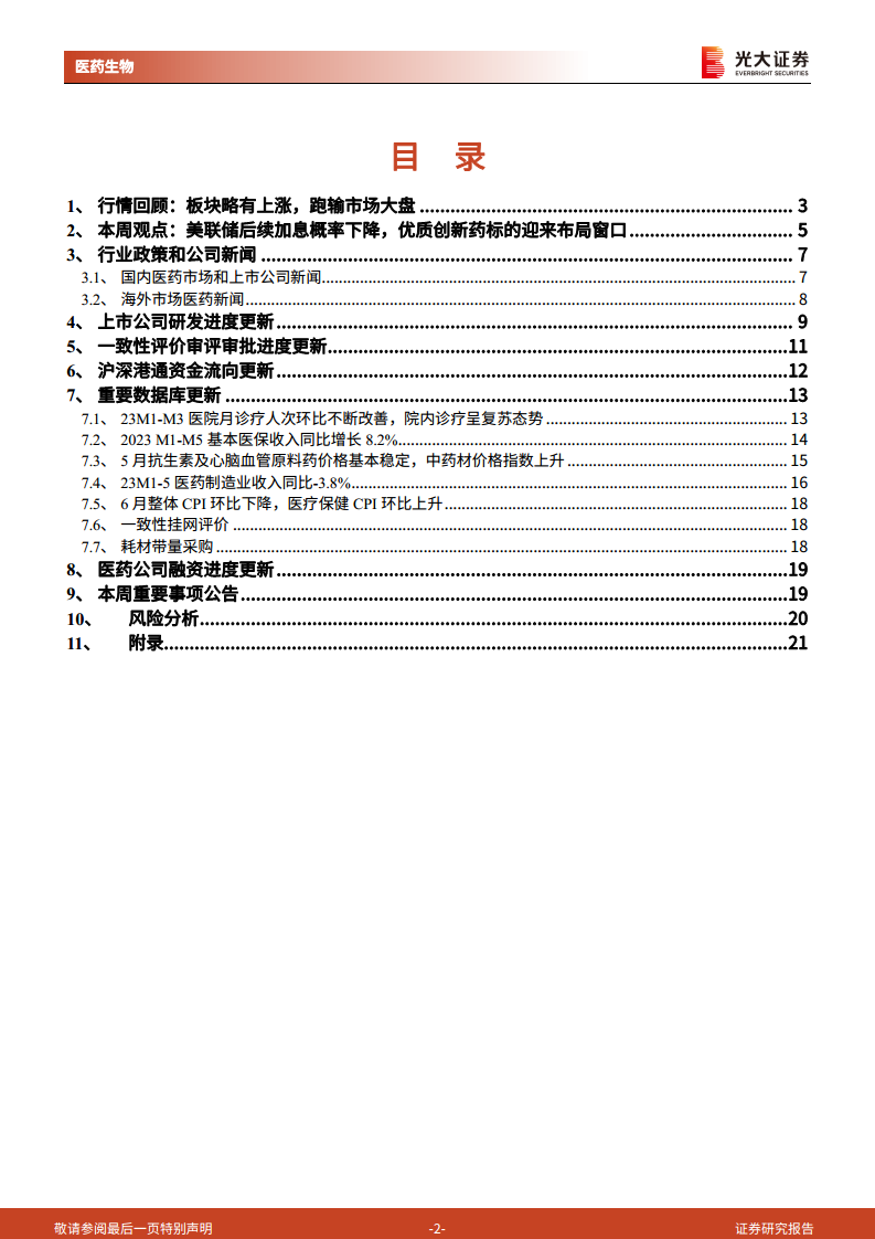 医药生物行业跨市场周报:美联储后续加息概率下降,优质创新药标的迎来布局窗口