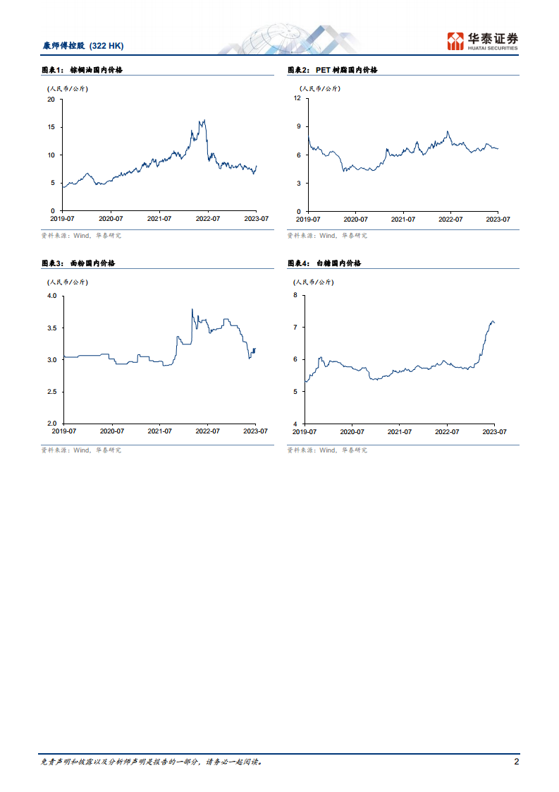 康师傅控股预计在2023年上半年实现净利润同比增长29.2%,净利率扩张0.7个百分点至4.0%。这一增长主要得益于原材料成本压力的显著缓解,特别是棕榈油价格的下跌,尽管部分增长被销售渠道费用增加所抵消。报告预测下半年原材料成本将继续缓解,进一步推动利润率持续改善。