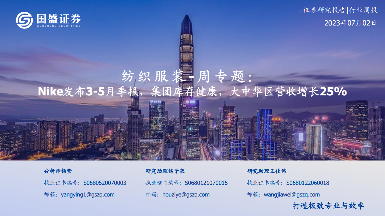 纺织服装周专题:Nike发布3-5月季报,集团库存健康,大中华区营收增长25%